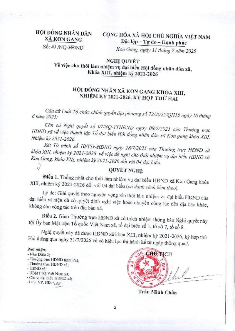| Phạm vi | xã Kon Gang | Ngày ban hành | 31/07/2025 |