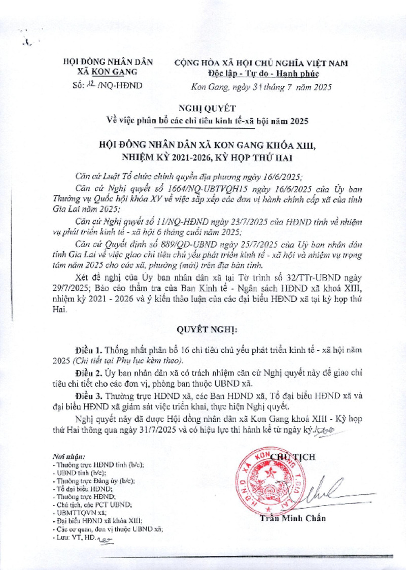 | Phạm vi | xã Kon Gang | Ngày ban hành | 31/07/2025 |