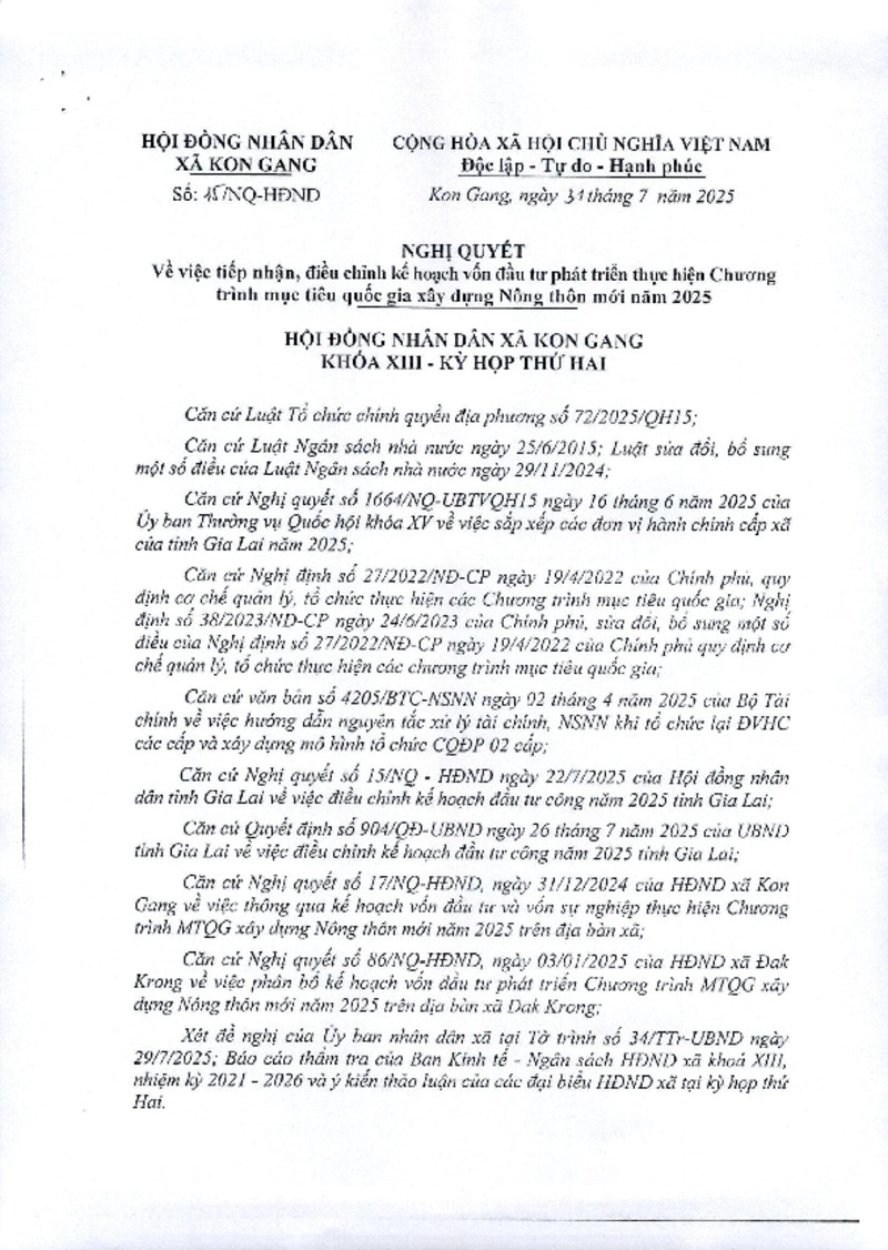 | Tiêu đề văn bản | NGHỊ QUYẾT Về việc tiếp nhận, điều chỉnh kế hoạch vốn đầu tư phát triển thực hiện Chương trình mục tiêu quốc gia xây dựng Nông thôn mới năm 2025 | ||