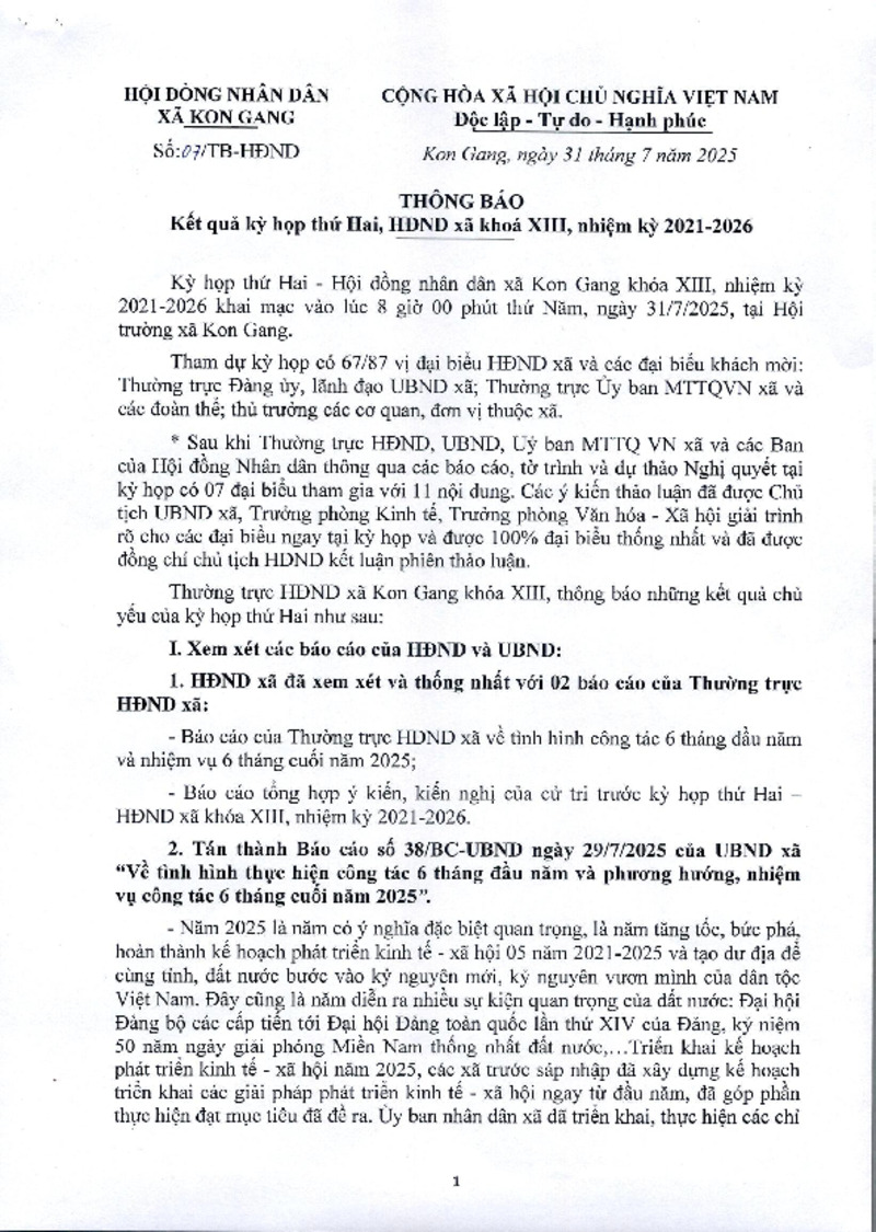 | Phạm vi | xã Kon Gang | Ngày ban hành | 31/07/2025 |