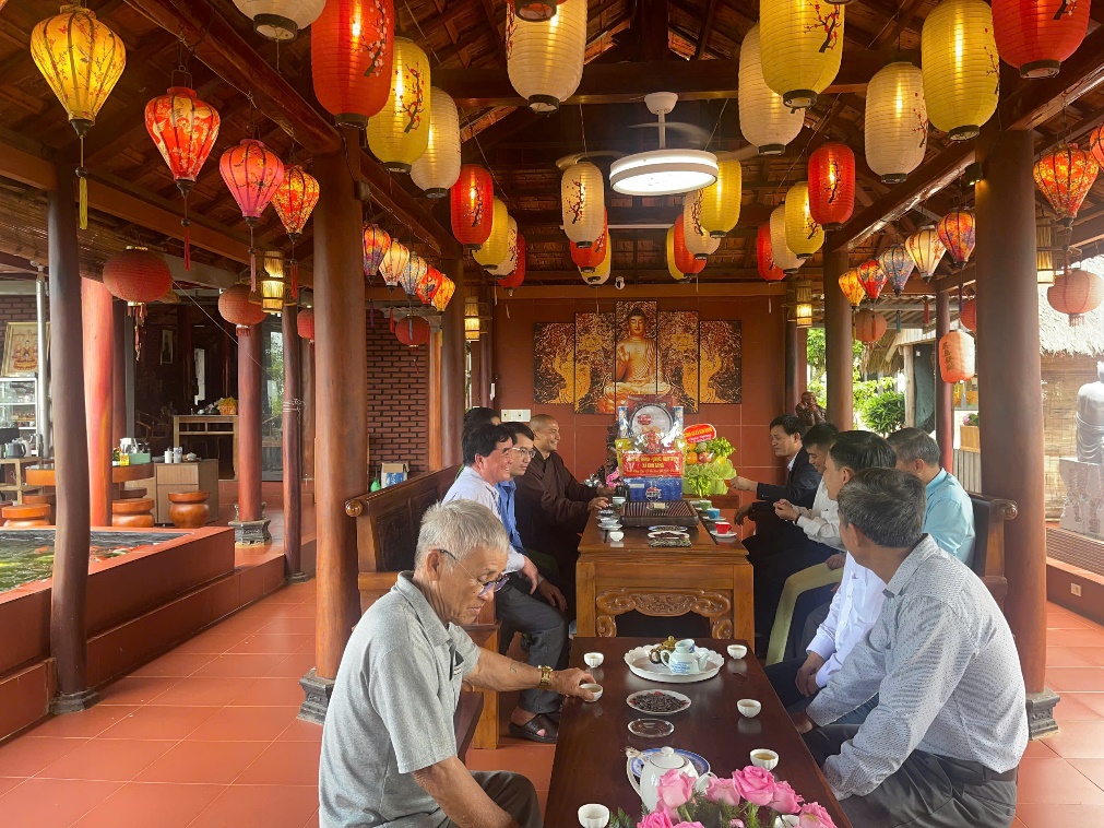 Tại nơi đến thăm, đồng chí Nguyễn Văn Trung Phó Bí thư Đảng ủy, Chủ tịch UBND xã thăm hỏi tình hình sức khỏe và gửi lời chúc tốt đẹp đến các Hòa thượng, Thượng tọa trụ trì nhà chùa cùng các vị chức sắc, chức việc nhân dịp Đại lễ Vu Lan năm 2025. Đồng chí khẳng định lễ Vu Lan là một trong những ngày lễ lớn của Phật giáo, mang ý nghĩa nhân văn sâu sắc, thể hiện đạo lý “uống nước nhớ nguồn”, “hiếu nghĩa vẹn toàn” - truyền thống quý báu của dân tộc ta. Đại lễ Vu Lan là dịp để mỗi người con tưởng nhớ, tri ân công ơn sinh thành, dưỡng dục của cha mẹ, ông bà tổ tiên; đồng thời lan tỏa những giá trị tốt đẹp của đạo hiếu, tình thương và lòng nhân ái trong cộng đồng.