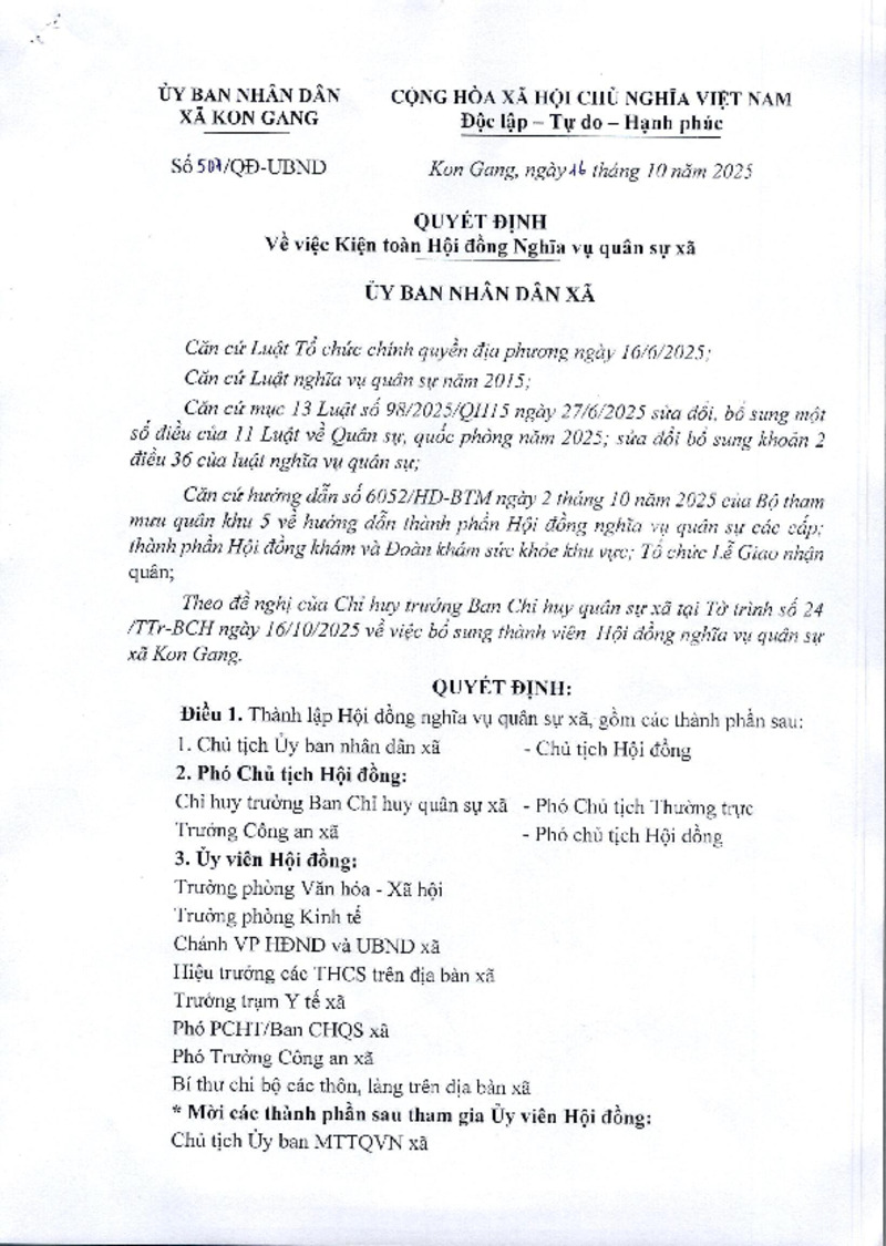| Tiêu đề văn bản | QUYẾT ĐỊỈNH Về việc Kiện toàn Hội đồng Nghĩa vụ quân sự xã | ||